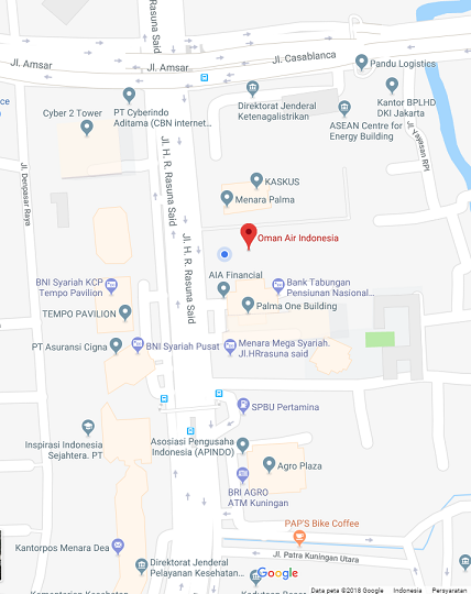 Kontak, Saran dan KritikPT Surindo Andalan GSA Of Oman Air Indonesia JL H.R Rasuna Said Block X-2 Kav 5 Setiabudi Jakarta Selatan 12950 Phone : 021- 2911 0799 Fax : 021- 2911 0807 ![]() |